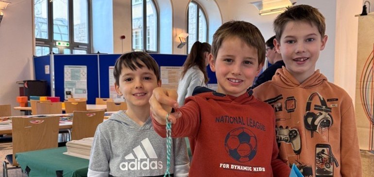 Am 3. Dezember besuchte unsere Schule mit der 3. und 4. Klasse die Ausstellung „Mathe zum Anfassen“ am Schiller-Gymnasium in Hof. Dort konnten die Kinder Mathematik einmal ganz praktisch erleben: spannende Experimente, knifflige Rätsel und viele überraschende Entdeckungen luden zum Ausprobieren ein.